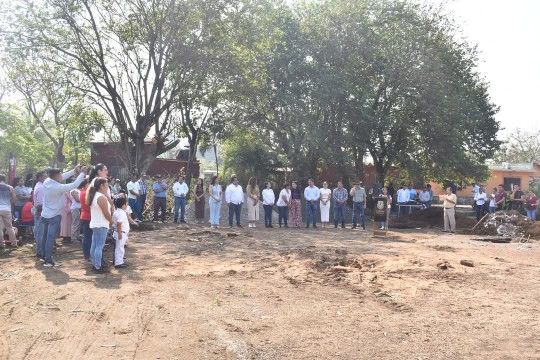 En compañía de ediles, agentes y subagentes municipales, docentes, alumnos y padres de familia, dimos el banderazo de inicio de obra de la construcción de un techumbre con cancha y un área de juegos infantiles para el Jardín de Niños María Enriqueta en la comunidad de Tula.
