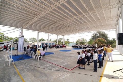 En Coyoltepec, se inauguró la obra de techado en la cancha de usos múltiples de la primaria “Nicolás Bravo”, obra con la que se beneficia directamente a 46 alumnos y se deja un beneficio para futuras generaciones.