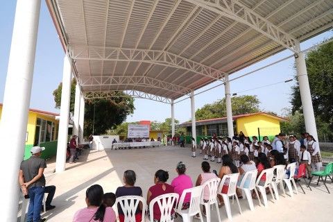 Por otro lado, en la comunidad de El Popotal, también se inauguró un domo en la cancha de usos múltiples de la escuela primaria “Miguel Hidalgo”, beneficiando a 115 alumnos de manera directa, con el techado de 540 metros cuadrados en esta obra que tuvo un costo de 1 millón 819 mil 813.35 pesos.
