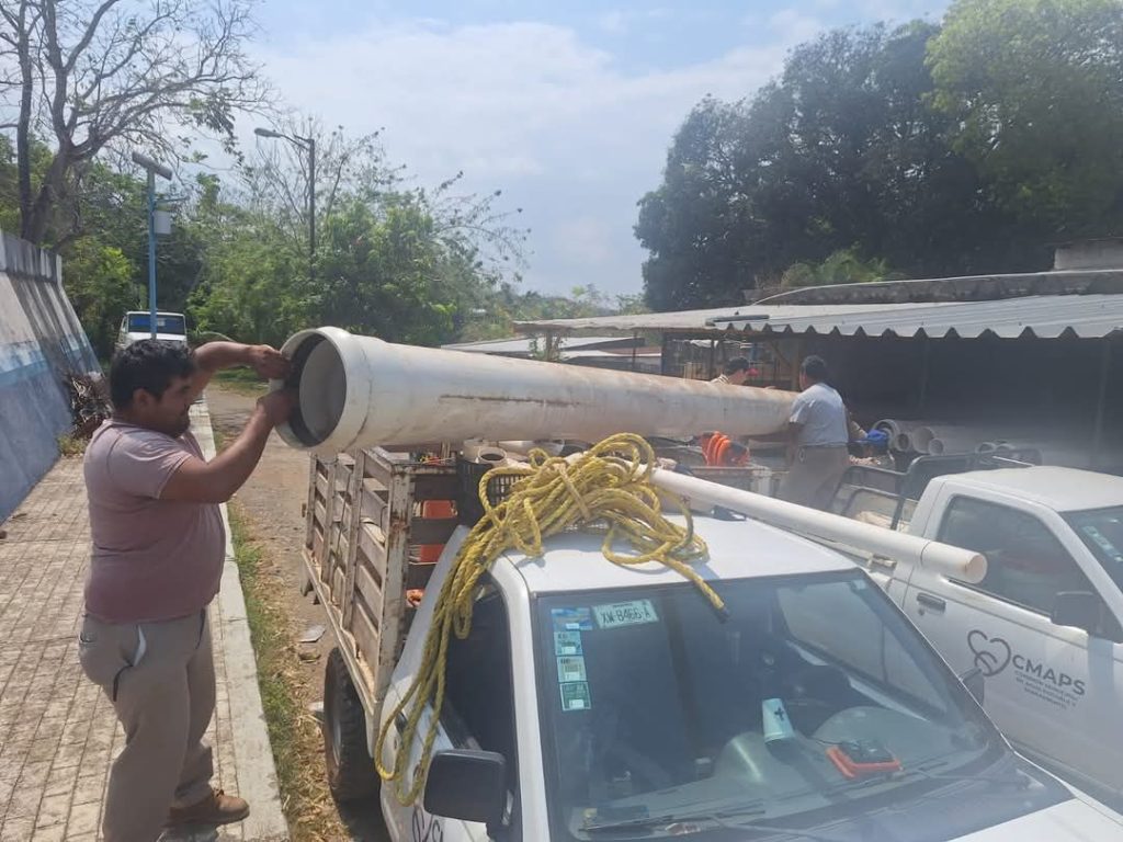 Desde las primeras horas del día, por instrucciones de la alcaldesa Dra Maria Elena Solana Calzada – Dra Remedios, cuadrillas de la Comisión Municipal de Agua Potable y Saneamiento (CMAPS), encabezadas por su director, el Ingeniero Ángel Heredia Madrigal, s se encuentran trabajando intensamente para reparar el desperfecto en la infraestructura afectada.