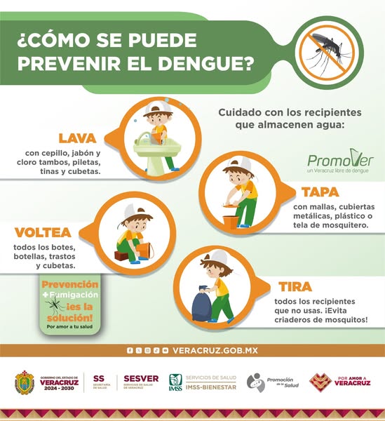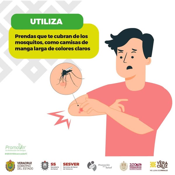 En el Ayuntamiento de Ángel R. Cabada 2022–2025, trabajamos por la salud y el bienestar de todas y todos. El dengue es una enfermedad transmitida por mosquitos que puede llegar a ser grave, pero juntos podemos prevenirla siguiendo estas recomendaciones: