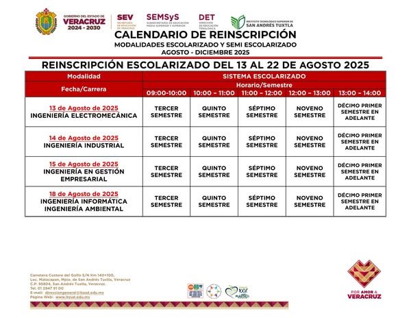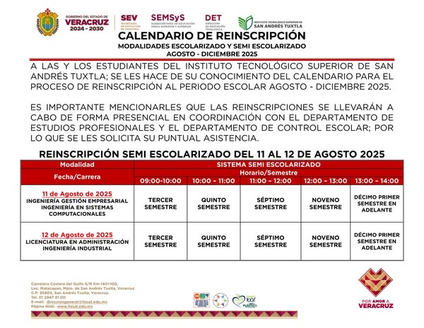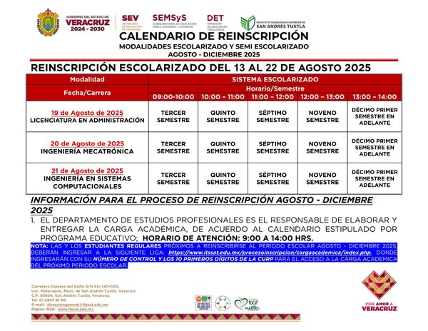 Calendario y proceso de reinscripción