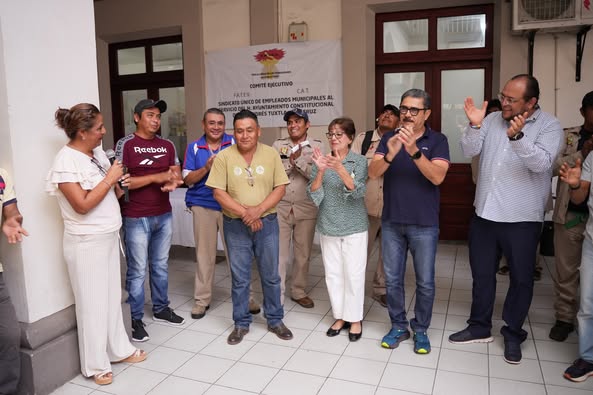 La administración municipal que encabeza la alcaldesa María Elena Solana Calzada, a través del Sindicato Único de Empleados Municipales al Servicio del Ayuntamiento Constitucional de San Andrés Tuxtla, dirigido por Marisol Medina Ixtepan, realizó un reconocimiento al compañero Miguel Escribano Polito, quien concluye su ciclo laboral tras 33 años de servicio ininterrumpido en el Departamento de Limpia Pública como machetero.