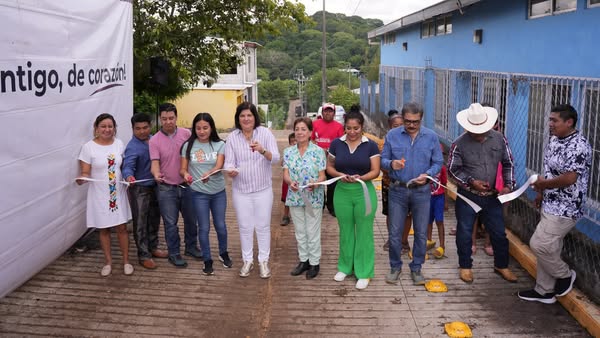 San Andrés Tuxtla, Ver.- Agradeciendo por los compromisos cumplidos, con obras que transforman y generan bienestar, el agente municipal de Cerro de las Iguanas, Juan Chontal Cagal, acompañado de pobladores de dicha localidad, recibieron a la Presidenta Municipal de San Andrés Tuxtla, María Elena Solana Calzada, para inaugurar junto con ella y sus ediles, la obra de pavimentación en la calle Independencia.