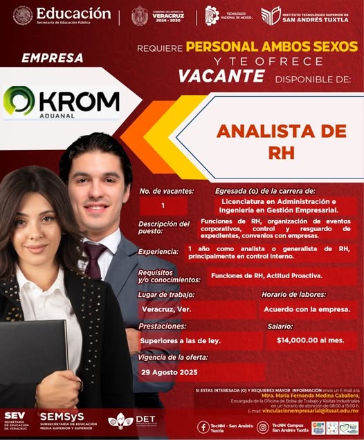 Bolsa de trabajo en Empresa «Krom Aduanal»