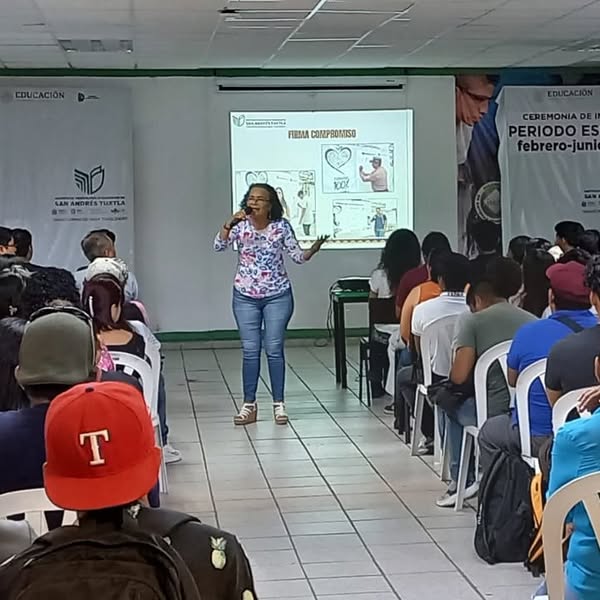 TecNoticias | San Andrés Tuxtla, Ver; agosto de 2025.- 🔰 A través de una charla de sensibilización ofrecida por la Mtra. Ofelia Enríquez Ordaz Subdirectora de Vinculación a 389 estudiantes de nuevo ingreso, se les informó a las y los jóvenes que recién ingresan al Tecnológico de San Andrés, que el instituto forma parte de la iniciativa nacional del TecNM “Espacio 100% Libre de Plástico de Un Solo Uso”, la cual consiste en el cambio hacia una nueva cultura en la cual se invita a toda la comunidad del TecNM y en particular del Tecnológico de San Andrés Tuxtla a reducir y eliminar por completo el uso de plásticos de un solo uso, desechables y no biodegradables, para fomentar el cuidado del medio ambiente y cambiar los hábitos de consumo, buscando reemplazar estos plásticos con alternativas duraderas y reutilizables.