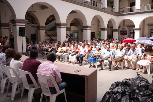 San Andrés Tuxtla, Ver.- Amenizando con marimba y entregando 170 despensas a adultos mayores de este municipio, este jueves la administración municipal que preside la alcaldesa María Elena Solana Calzada, festejó a los abuelitos en su día, recordando la importancia que tienen como pilares de la sociedad y corazón de las familias sanandrescanas.