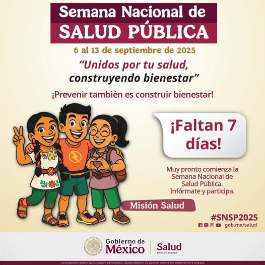 Del 6 al 13 de septiembre, se llevará a cabo la Semana Nacional de Salud Pública, un evento que busca acercar los servicios de salud a la comunidad y fomentar estilos de vida saludables. Bajo el lema «Unidos por tu Salud, Construyendo Bienestar», se invita a la población a participar activamente en diversas actividades programadas, así lo da a conocer la nutrióloga Jessica Iliana Alvarez Domínguez.