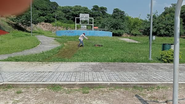 Por instrucciones de la presidenta municipal, Dra. María Elena Solana Calzada, el Ayuntamiento de San Andrés Tuxtla, a través de la Dirección de Parques y Jardines que encabeza Prisciliano Villaseca Malaga, realiza trabajos de mantenimiento en las áreas verdes del Parque Infantil del Ferrocarril.