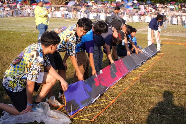 - El equipo brasileño Pai e Filho elevó un magistral trabajo con estampas representativas del municipio y una bandera de velas formando una figura.