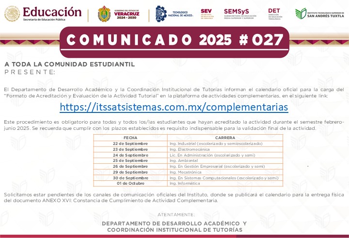 Comunicado 2025-027 Departamento de Desarrollo Académico y Coordinación Institucional de Tutorías