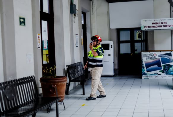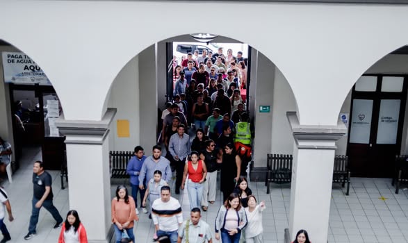 - Siguiendo el protocolo preventivo y de emergencia, empleados municipales y servidores públicos participaron en las maniobras de evacuación.