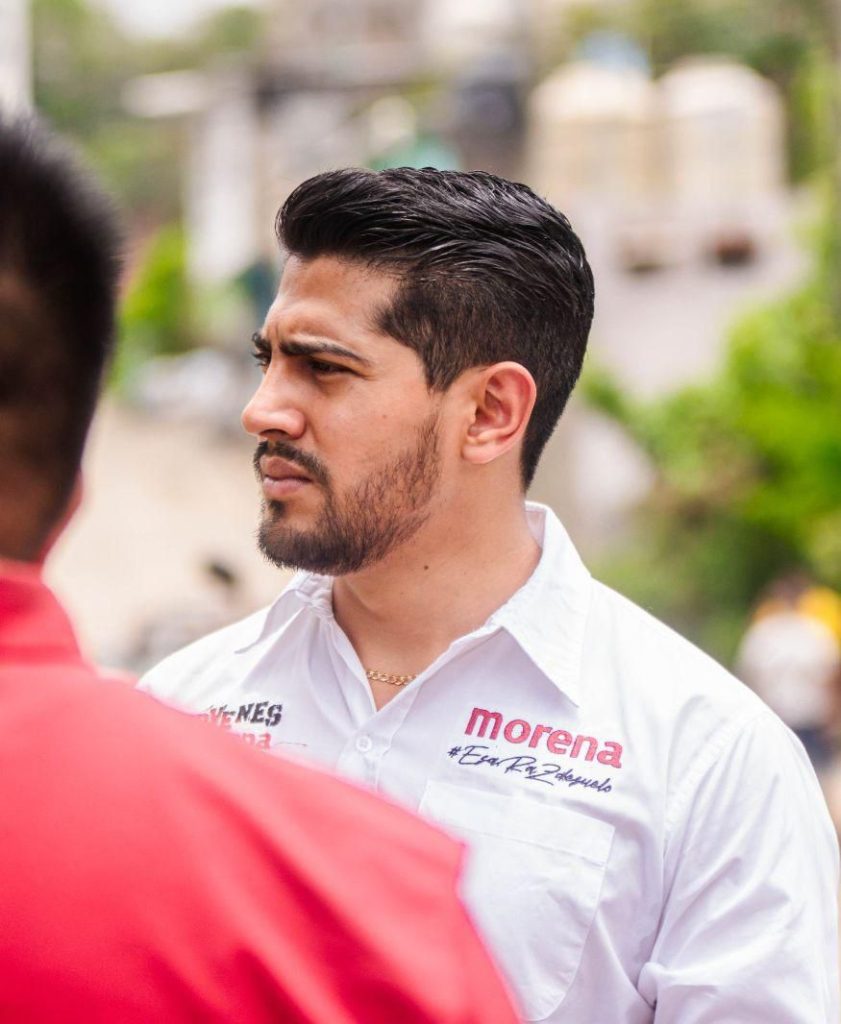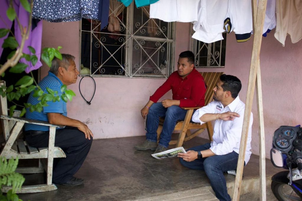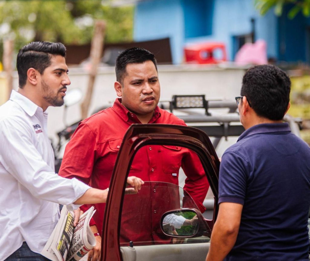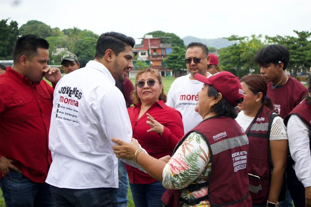 -Aaron Enríquez, secretario nacional de Jóvenes MORENA y el director de la Secretaría del Trabajo, Fernando Ferman, originario de San Andrés Tuxtla, visitan a ciudadanos.