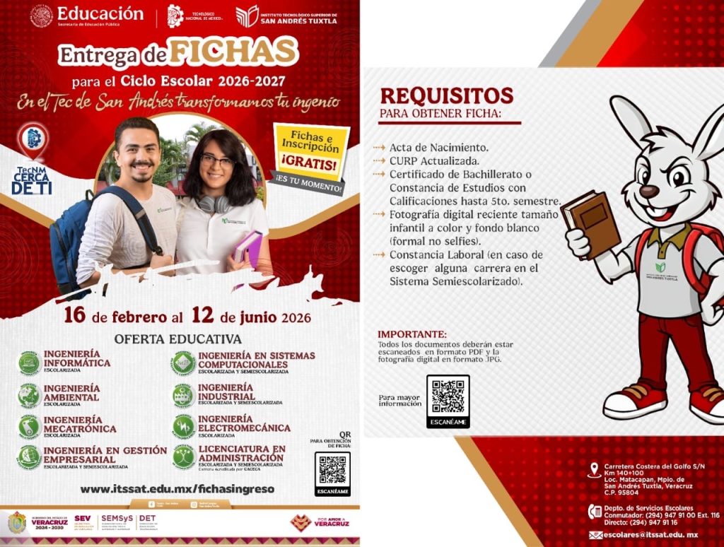 🚀 ¡Inicia tu futuro profesional en el TecNM San Andrés Tuxtla! Entrega de Fichas 2026 📚✨