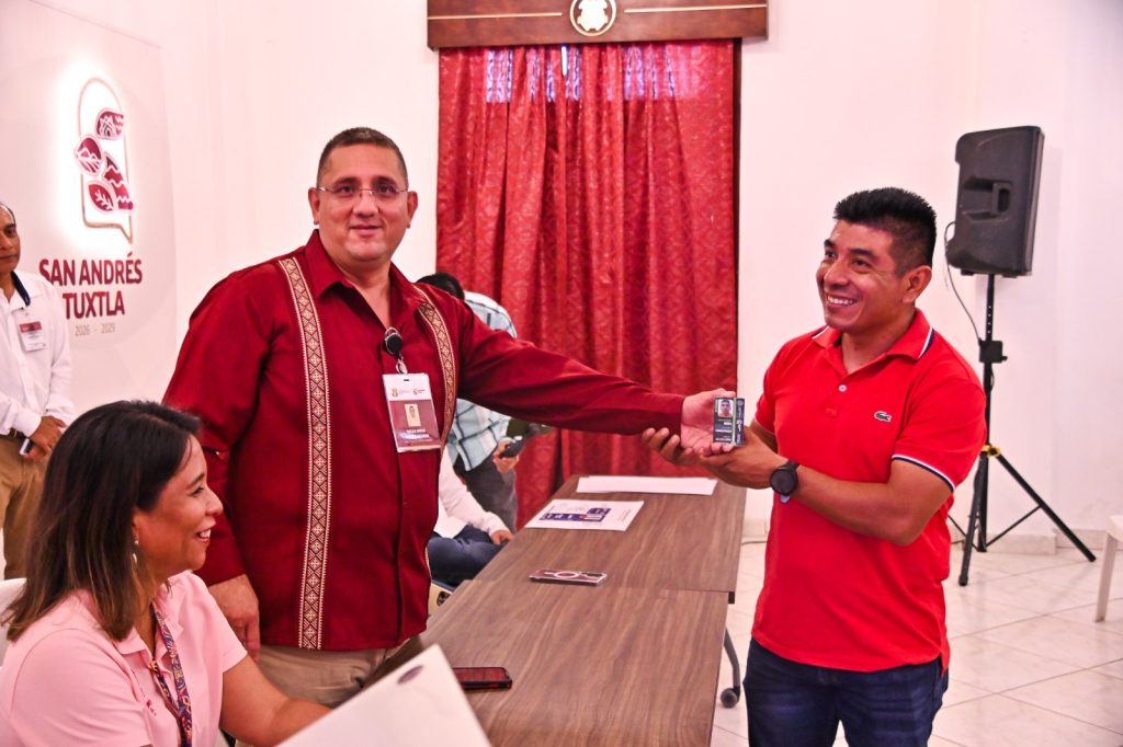 San Andrés Tuxtla, Ver., 24 de abril de 2026.- Este viernes, en Sala de Cabildos, la dirección de Gestión Urbana, a cargo del director Oscar Torres Aguirre, entregó las primeras credenciales de empadronamiento a 79 vendedores del parque Sebastián Lerdo de Tejada.